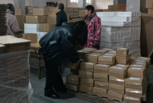 包裝區更是一片繁忙 “戰場”,各個部門調派人手給倉庫增援,大家齊心協力,膠帶在紙箱上飛速纏繞,發出 “滋滋” 聲響,紙板折疊的 “咔嚓” 聲此起彼伏,交織成一曲激昂的勞動贊歌。有的員工為了爭分奪秒,一整天下來,水杯就在觸手可及之處,卻愣是一口未碰;長時間重復彎腰、起身的動作,腰背酸痛難忍,他們也只是趁著短暫間隙,簡單活動一下僵硬的身軀,便又馬不停蹄地投入工作。